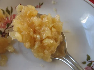 peste care am pus mierea de albine , am rasturnat borcanul pana ce s-a omogenizat si fiecare bob de catina era complet invaluit in miere.