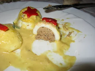 Am pus aceasta umplutura peste bucatile de piept , le-am rulat si impachetat capetele ca la sarmale si le-am legat cu ata de bucatarie ca sa isi pastreze forma.